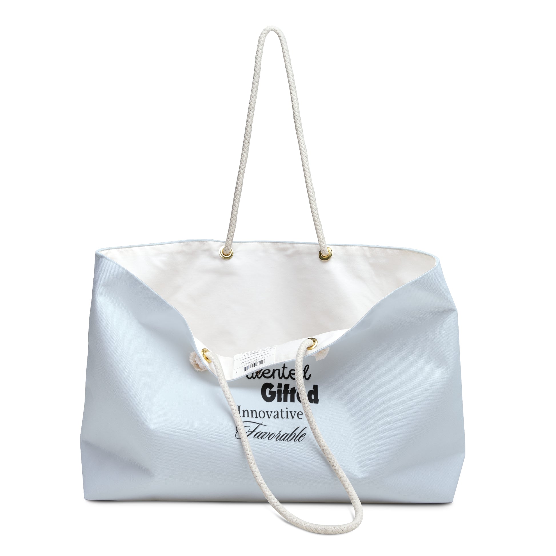 TGIF oversized Weekender Tote is perfect for your weekend at the beach or in town. The wide-mouthed, durable bag holds a generous amount of personal items and is easily held by its thick rope handles.
